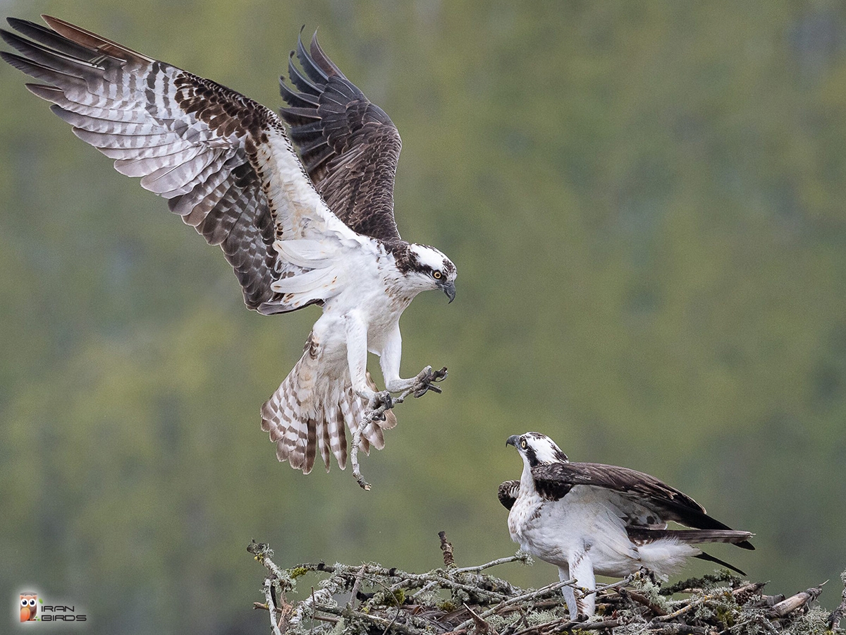 - لانهسازی: هر دو پرنده در ساخت لانه بزرگ و حجیم از شاخهها مشارکت میکنند. لانهها معمولاً در بالای درختان بلند، صخرهها یا سکوهای مصنوعی ساخته میشوند و ممکن است سالها مورد استفاده قرار گیرند و به مرور زمان بزرگتر شوند.