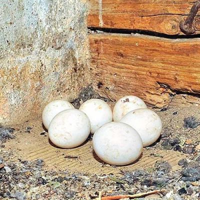 - تخمگذاری: ماده معمولاً ۳ تا ۵ تخم سفید میگذارد، اما تعداد آن میتواند از ۲ تا ۸ تخم متغیر باشد.